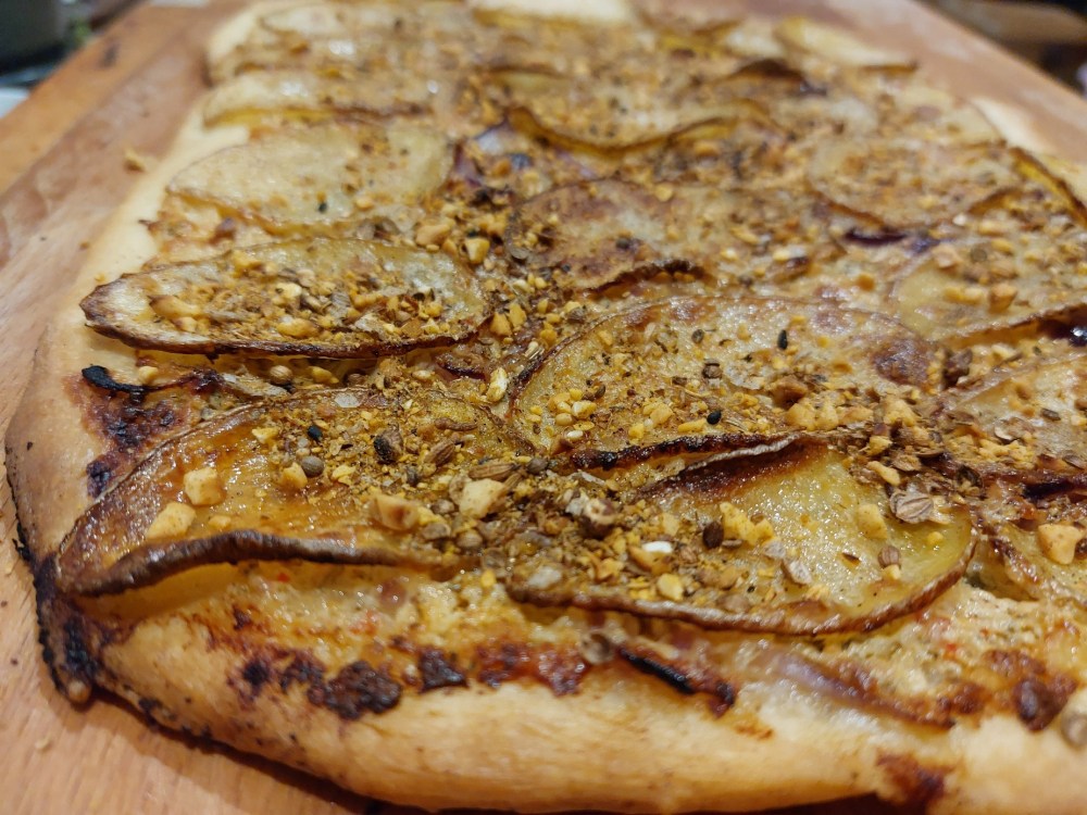 Vor dem Servieren noch Dukkah auf die Pizza streuen und genießen!